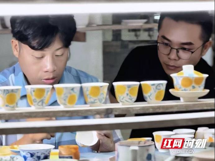 “雪峰橘颂”系列陶瓷杯壶。师徒传匠心,让古瓷再添一抹蜜橘新韵创作过程中,师徒两人经常凌晨一两点还在商议设计稿,最终从《橘颂》当中提炼出“雪峰橘颂”主题,并确定以茶器为载体,舍弃陶土,选用纯净的瓷土原料创作。师徒两人,一个写瓷作画,一个上釉烧制,很快让陶瓷的温润与雪峰蜜橘的鲜活融合。尹志军说:“离开洞口几十年,最难忘的就是小时候在橘园里吃蜜橘的场景。这次能把这份记忆画在陶瓷上,解了我多年的乡愁。”“雪峰橘颂”系列文创陶瓷杯壶,是师徒二人乡愁的寄托,更是洞口文化与产业融合的生动载体。杯身的蜜橘元素,既呼应着1973年周恩来总理为“雪峰蜜橘”命名的历史荣光,也承载着产业蓬勃发展的希望。2020年,在中国果品区域公用品牌价值评估中,洞口“雪峰蜜橘”的品牌价值已达9.39亿元,近几年正逐步攀升。这次师徒跨界共创的“雪峰橘颂”文创陶瓷作品,让文化赋美当地农业支柱产业,为乡村振兴赋能。目前,首批“雪峰橘颂”系列文创陶瓷已烧制完成,将参与该县雪峰蜜橘品牌推广季的专题展览。王周能说:“下一步,我们将会把更多家乡好物,融入洞口宋瓷的创作之中,让洞口宋瓷被更多人知晓。”举报/反馈